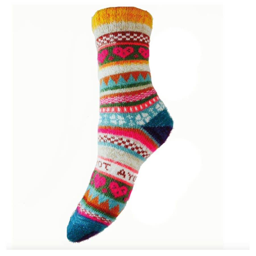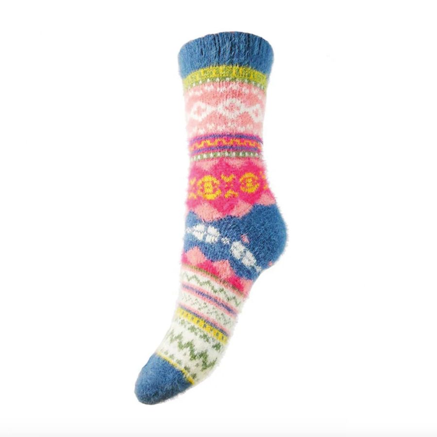 Gemjar Blue and Pink Scandi Patterned Soft Wool Blend Socks
