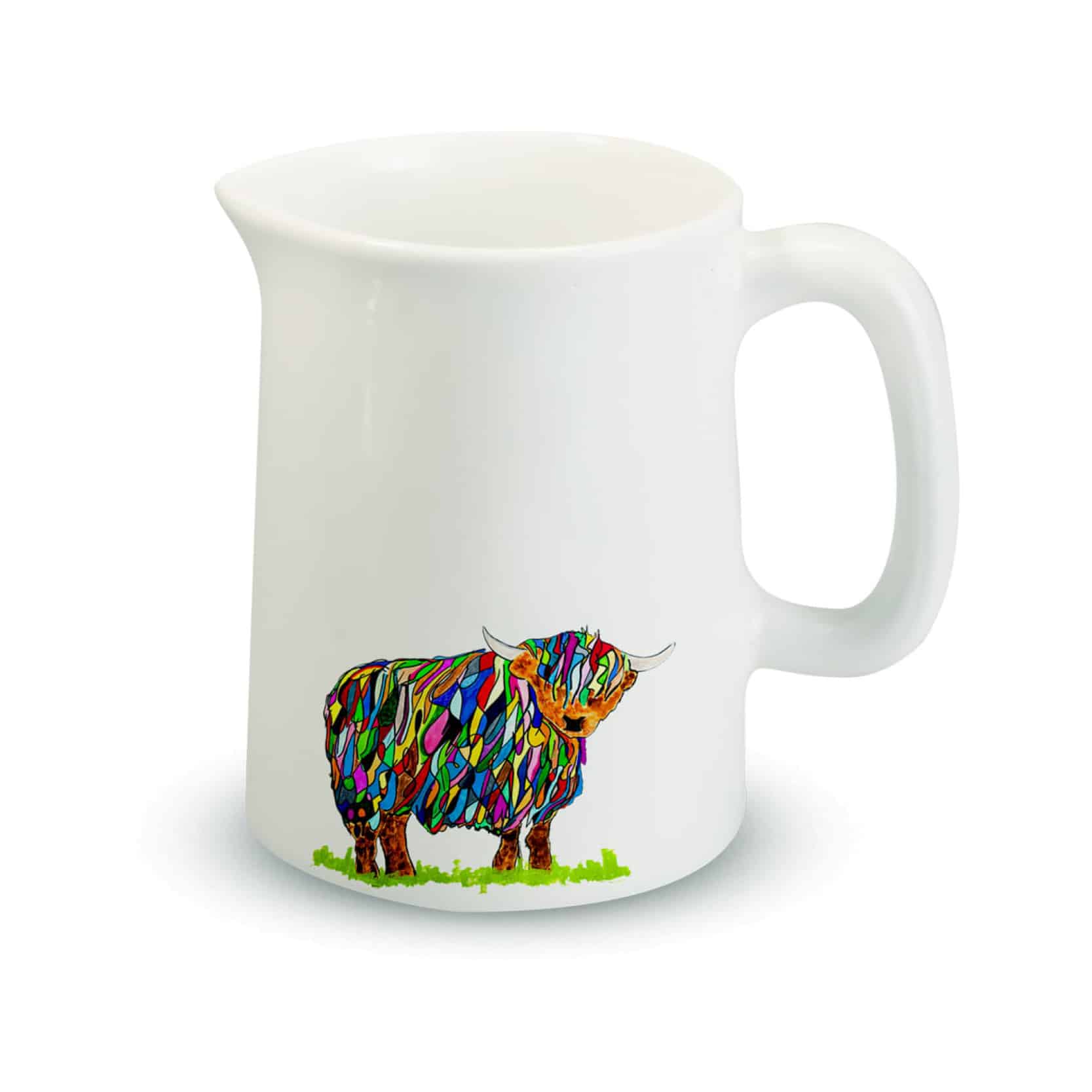1/4 pint fine bone china mug featuring Chloe’s bright cow design.