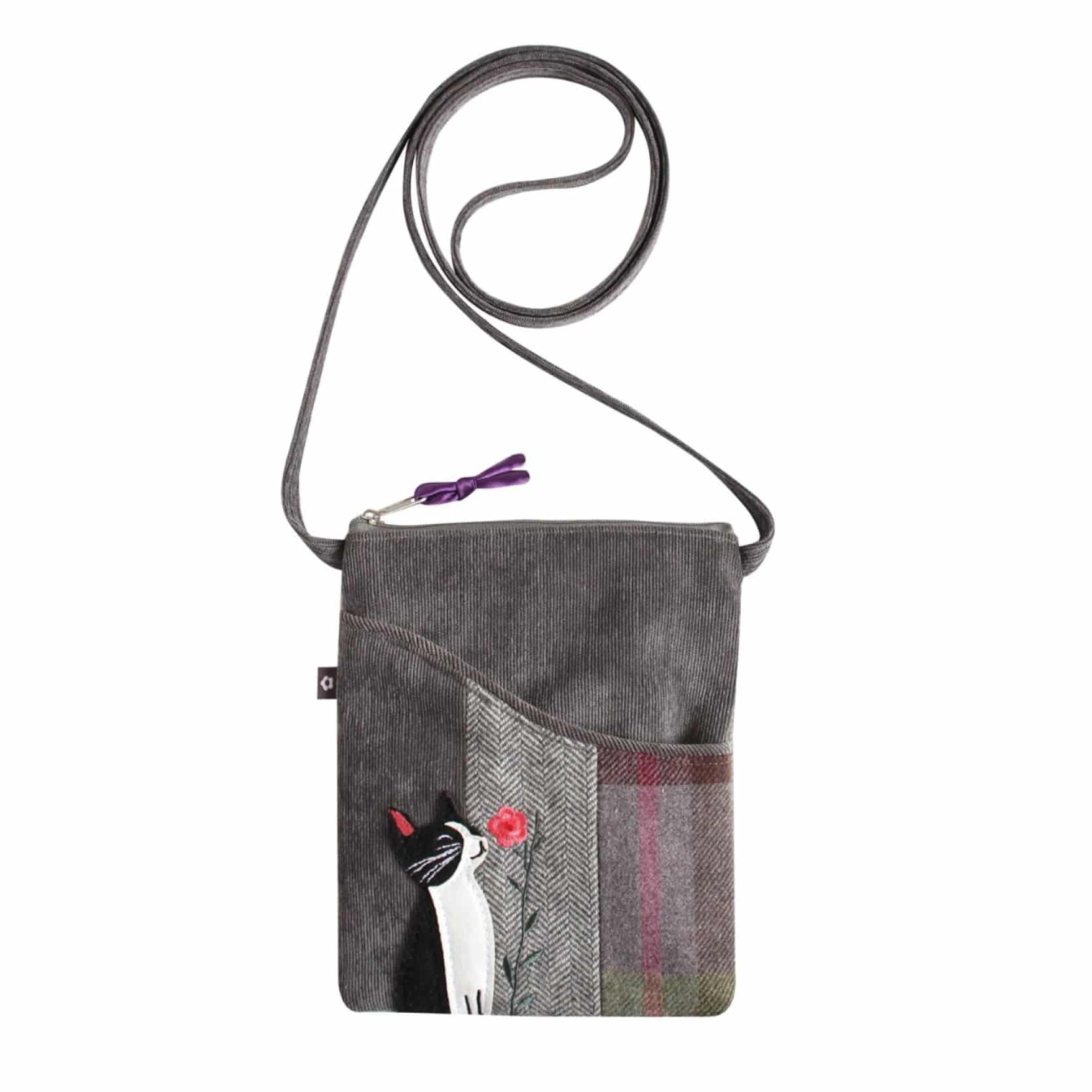 This cute little sling bag is perfect for days when you just want to travel light, making it ideal for dog walking or the school run! It features a fun animal appliqué, a mix of soft tweed-style fabrics, one zipped main compartment and a handy front slip pocket. With its slim cord strap and recycled-fabric lining, it’s an easy, everyday companion.