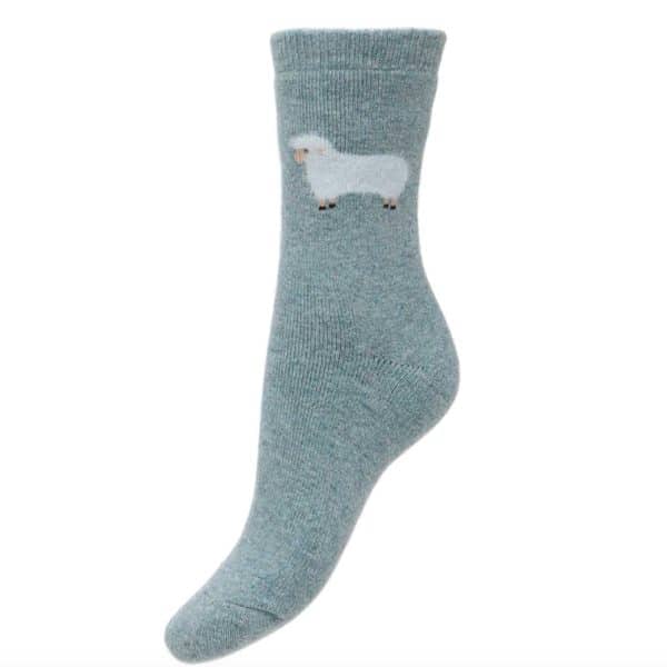 Soft and warm, these green and white Nordic patterned socks have a contrasting light purple heel, cuff and toe