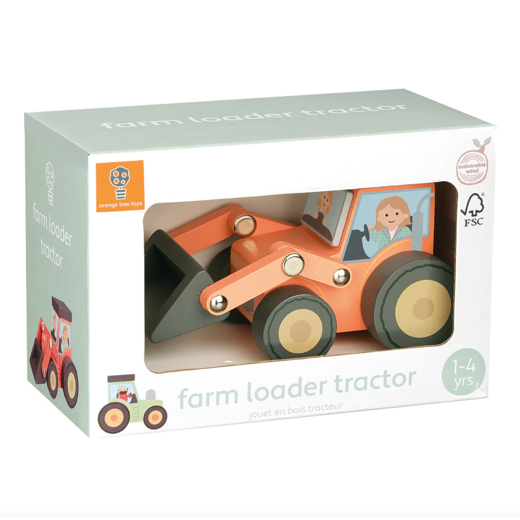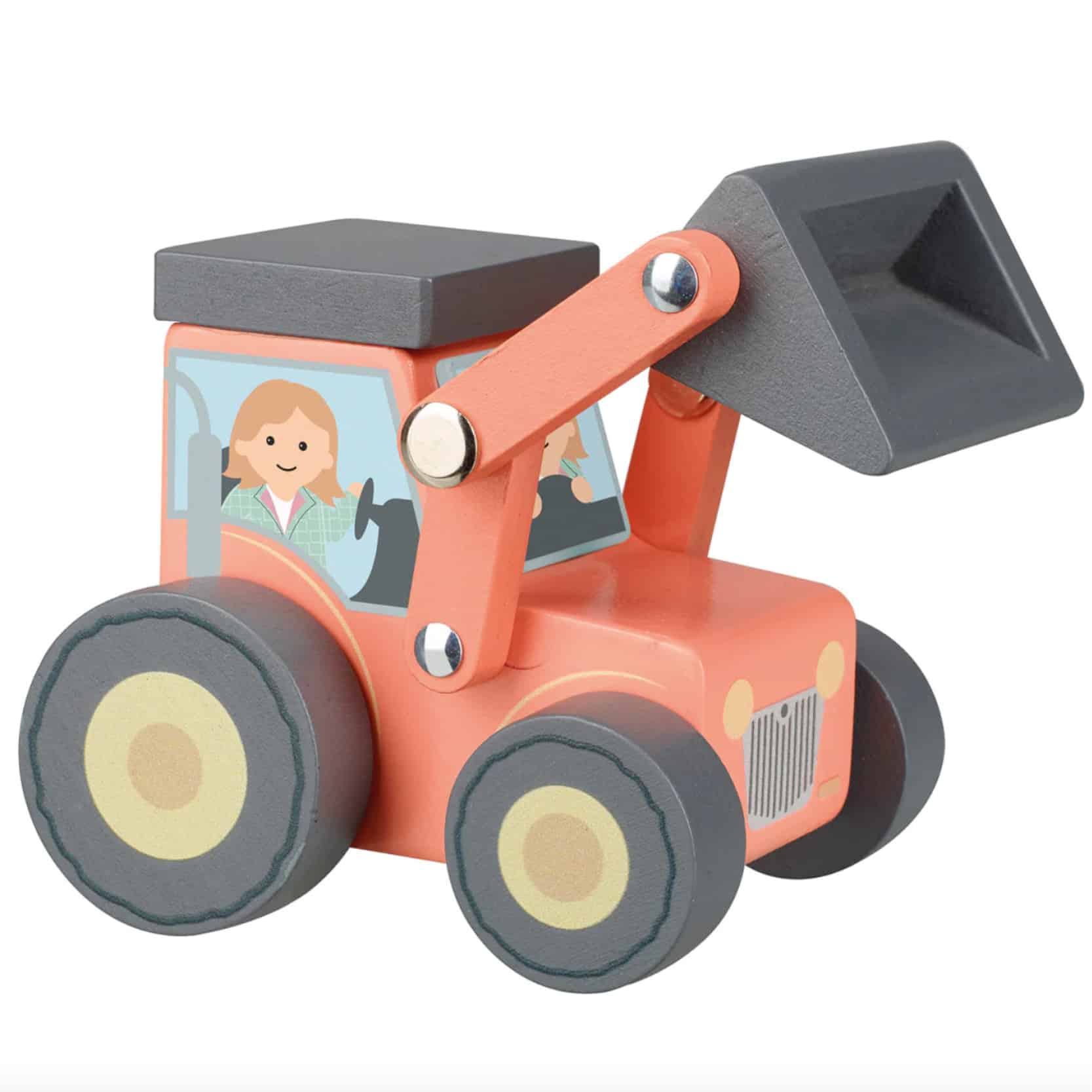 This wooden Farm Loader Tractor with movable scoop is perfect for imaginative play.