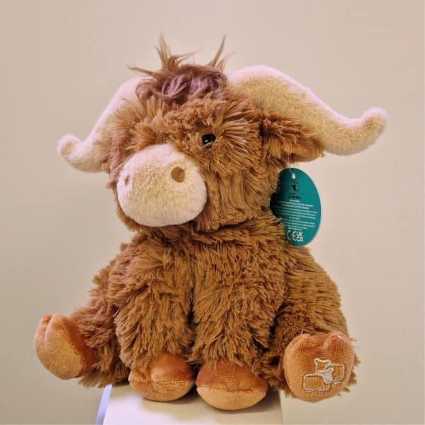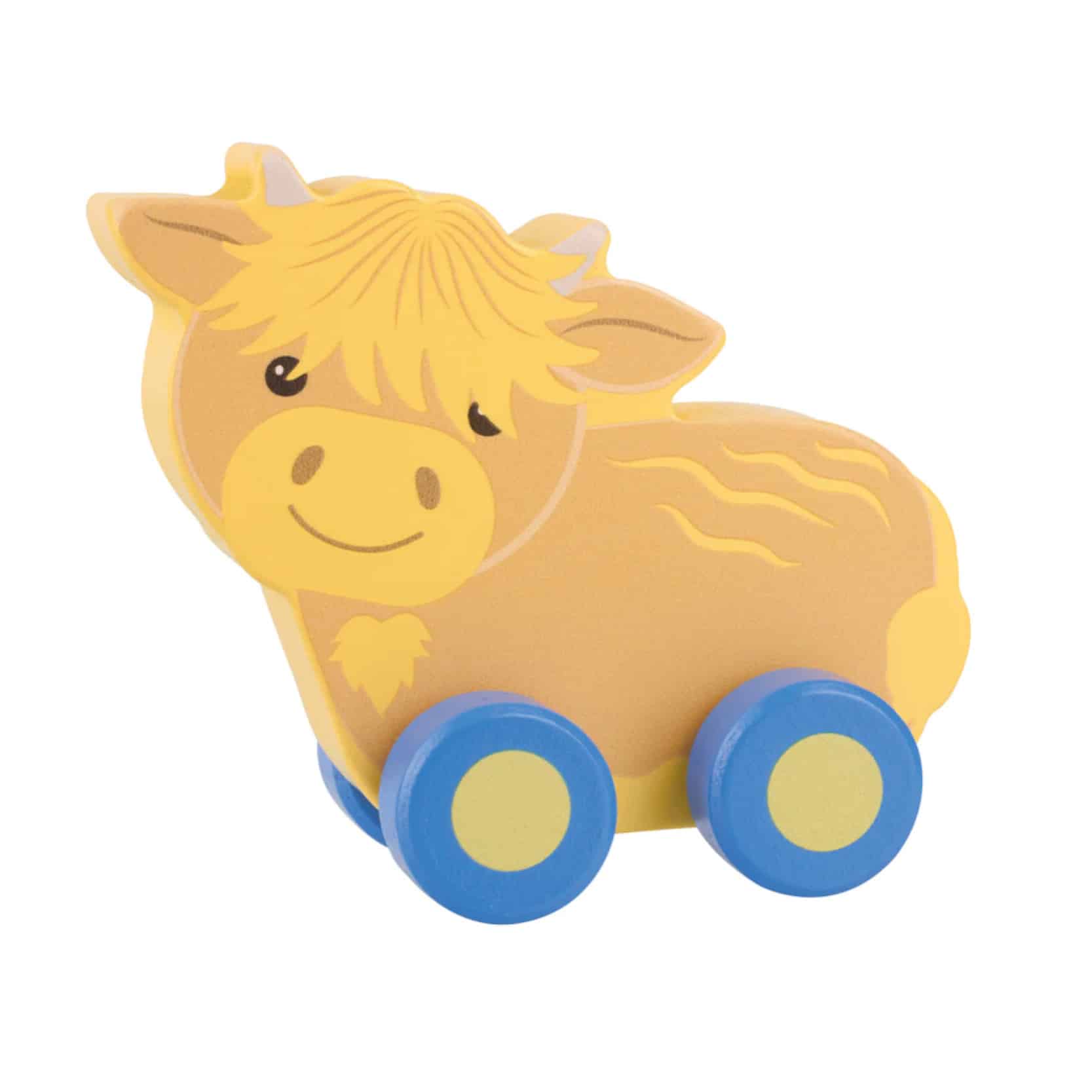 This chunky highland cow first push toy is ideal for little hands to grasp and push along.