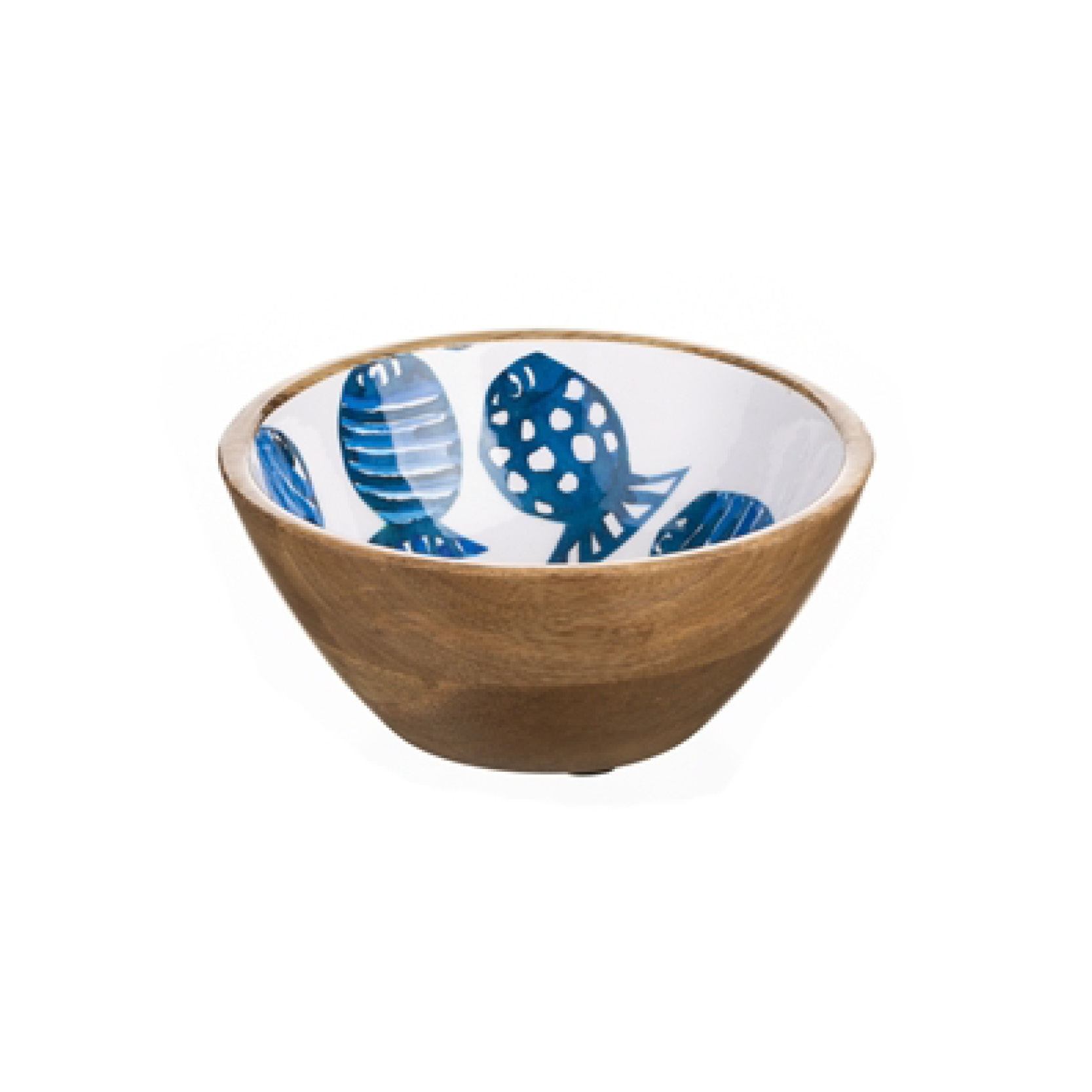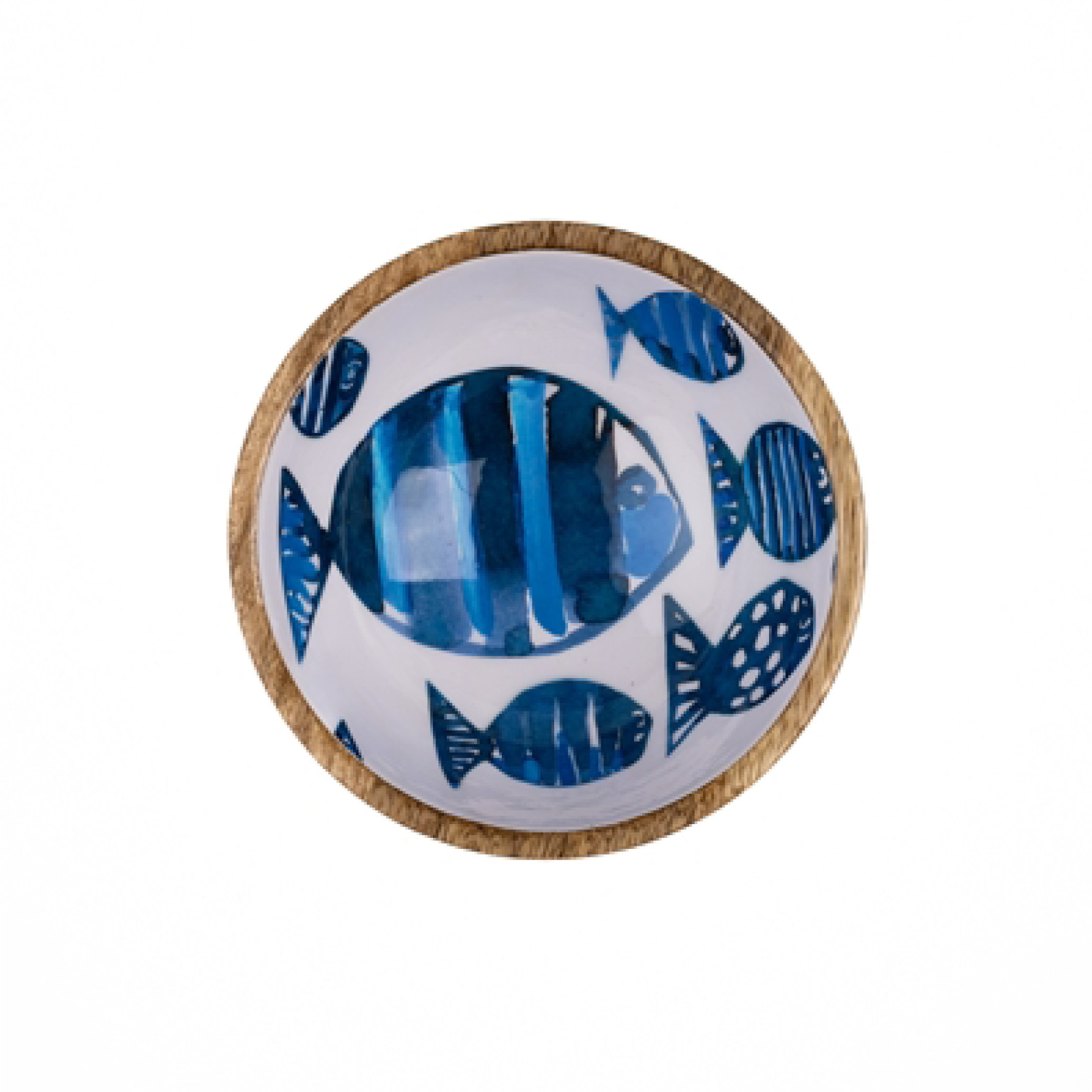 Add some ocean themed charm to your dinner table with this fun wooden dip bowl featuring a shoal of fish.